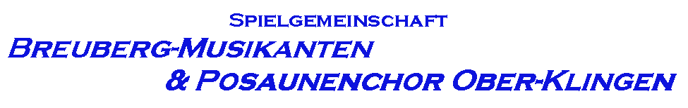 auf den gemeinsamen Internet-Seiten der Breuberg-Musikanten und des Posaunenchors Ober-Klingen. Wir freuen uns, dass Sie den Weg zu uns gefunden haben und wünschen Ihnen viel Spaß beim Besuch unserer Seiten.